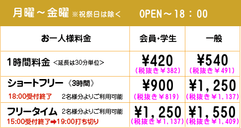 <オールタイム>ドリンクバー無料‼※すべて税込み価格で表示しています。※幼児は大人1名につき2名まで無料です。※小学生は半額料金となります。※ショートフリー及びフリータイムは大人2名様分の料金でお一人様でも利用可能です。※年末年始・ゴールデンウィーク・お盆などの特別期間は料金が異なる場合がございます。